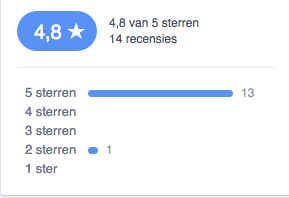 Zoals u kunt zien krijgen wij een resultaat van 4,8 sterren op 5 via onze Facebookpagina, aan iedereen die ons een ster gaf, bedankt!